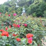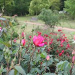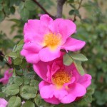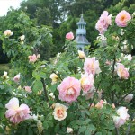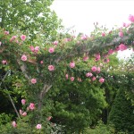 - ロープに這ったつるバラが続々開花中です