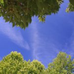 真っ青な空!モミジバフウの緑が映えます。
