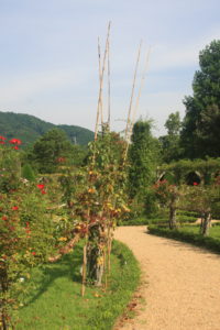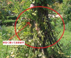 わかりますか?竹を使って、上へ伸ばしています。ぎっちりシュートと結ぶ必要はなく