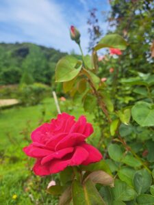 本日も晴れ2024年6月17日 in 全部 by bagatelle 本日も晴れております。園内の花はピークの3割程度になっております。 梅雨入り前で暑い日が続いておりますが暑い日はカフェでバラソフトなどめしあがっていただきたいです。