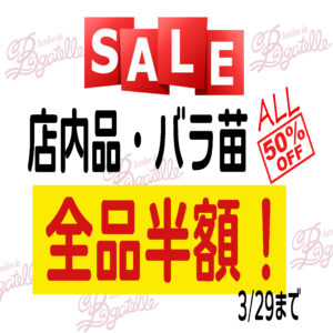 フランス広場内の「バラショップ」では、店内商品およびバラ苗 全品50%OFF!の大セールを開催❤ この機会に是非お好みの一品を!